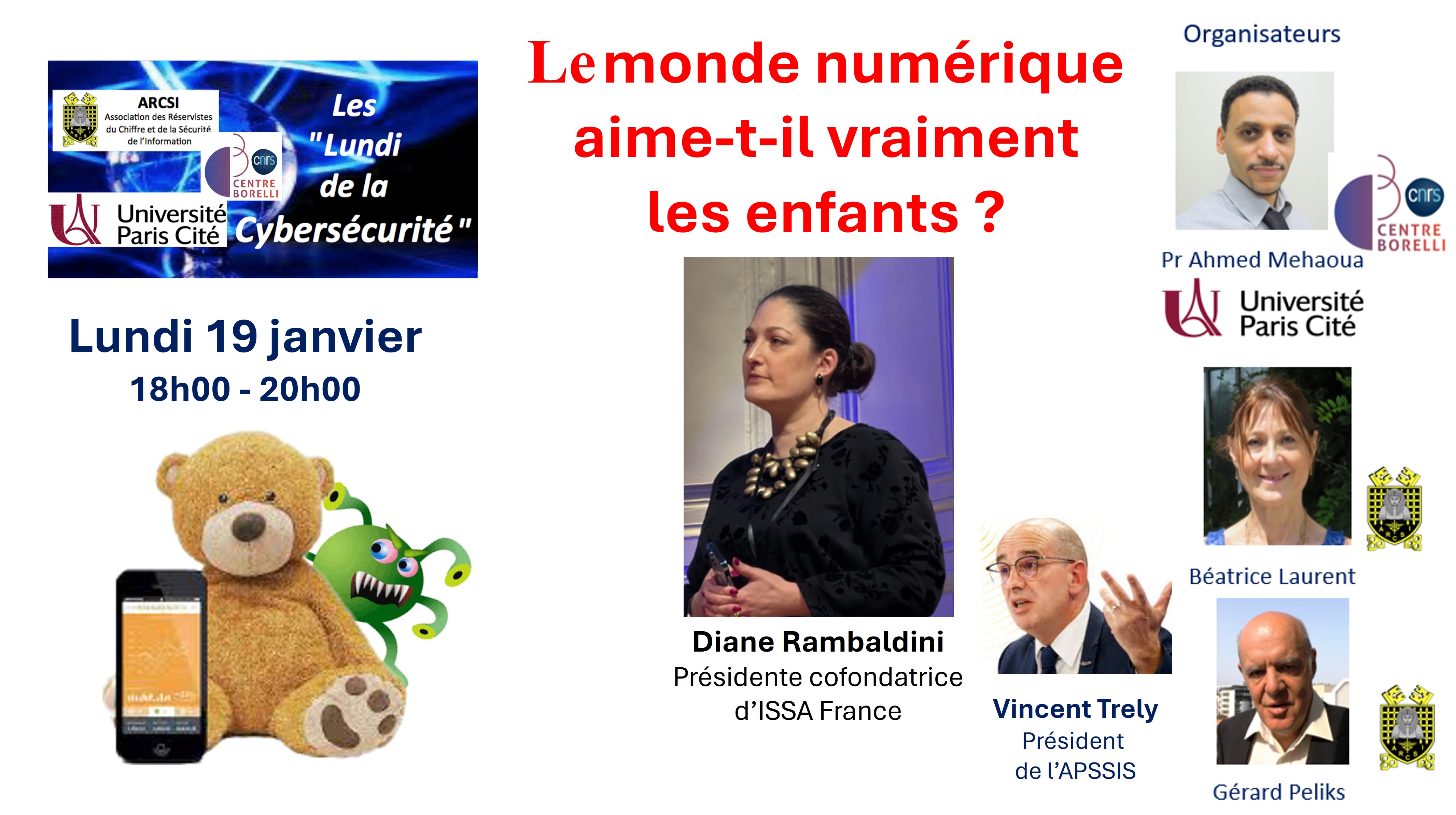 Un atelier interactif pour que le numérique ne soit plus une source de conflits à la maison. Intervenante et intervenant : Diane RAMBALDINI, présidente de l'Association ISSA France, qui cette année a lancé le Mouvement Lumérique. Vincent TRELY, président de l’APSSIS, Association Pour la Sécurité des SI de Santé pour le « quart d’heure des associations ». Demande d’inscription par mail à beatricelaurent.cde@gmail.com Participation gratuite, Pour plus de renseignements sur cet évènement : |